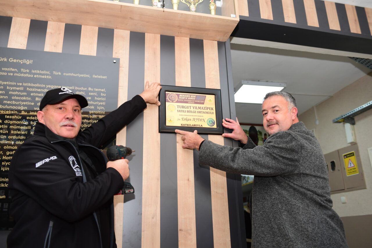 Turgut Yılmazipek Yatılı Bölge Ortaokulu’na desteklerinden dolayı Osmangazi Belediye Başkanı Erkan Aydın’a teşekkür edildi.