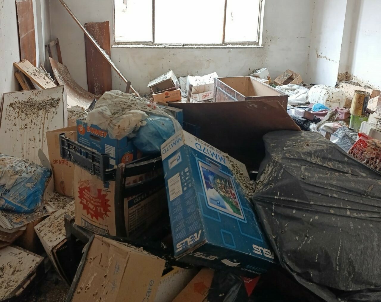 Kullanılamaz durumdaki eşyalar camlardan doğrudan çöp kamyonuna atıldı.