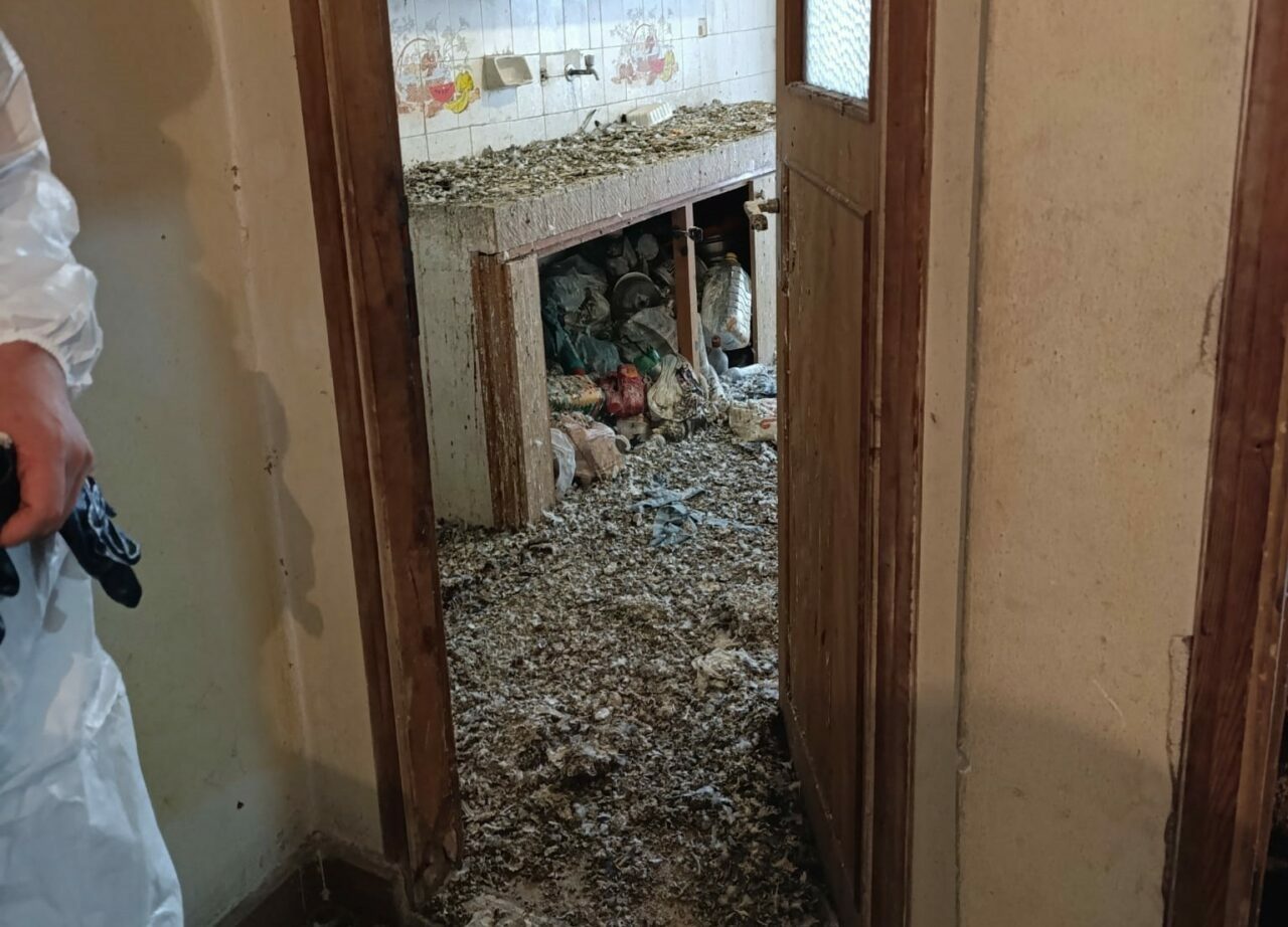 Evin cam ve kapılarının uzun süredir açık olduğu, odaların kuşlarla dolduğu ve dairenin adeta kümese döndüğü görüldü.