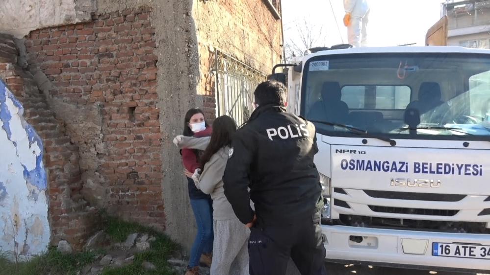 Kapının önüne yanaşan kamyona camdan topladıkları çöpleri atan ekiplere bağırarak sitem eden ev sahibi M. A., kamyon kasasındaki eşyalarını görünce çığlık attı. Engelli kızına çeyiz için o eşyaları aldığını öne süren M. A. “Kızımın çeyizlerini atıyorsunuz, atmayın. Örgü iplerimi de atmışlar” diye bağırdı.