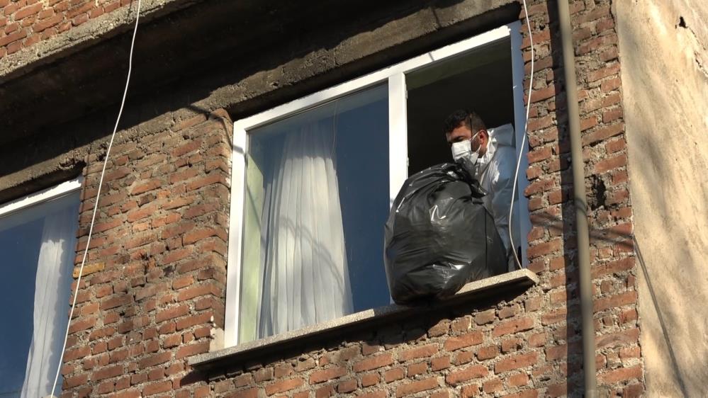 Savcılık kararı ile girilen evde ekipler çuval çuval çöp topladı.