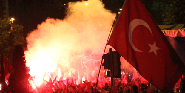 Bursa’da Fomara Meydanı’nda AK Parti İl Başkanlığı önünde Türk bayraklarıyla toplanan binlerce vatandaş, darbe karşıtı sloganlar attı. Türk bayraklarını sallayan vatandaşlar, demokrasi için meydanları çoluk çocuk demeden doldurdu. Askerin içindeki bir grubun darbe girişiminin püskürtülmesini tebrik eden coşkulu kalabalık, demokrasi için sokakları boş bırakmadı. Bazı vatandaşların demokrasi şölenine yeni doğmuş çocuklarıyla katıldığı görüldü. Köylü vatandaşlar ise traktörleriyle şehir merkezinde tur attı. “İdam cezası geri gelsin”, “Dik dur eğilme, bu millet seninle”, “Devlete uzanan eller kırılsın” şeklinde sloganlar atan kalabalığın AK Parti önündeki kutlamaları devam ediyor. Fomara Meydanı trafiğe kapatılırken, polis geniş güvenlik tedbirleri aldı.