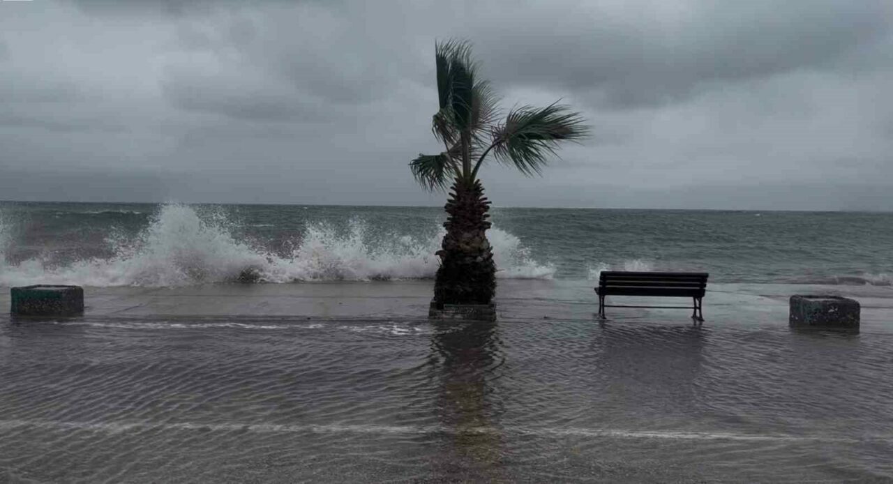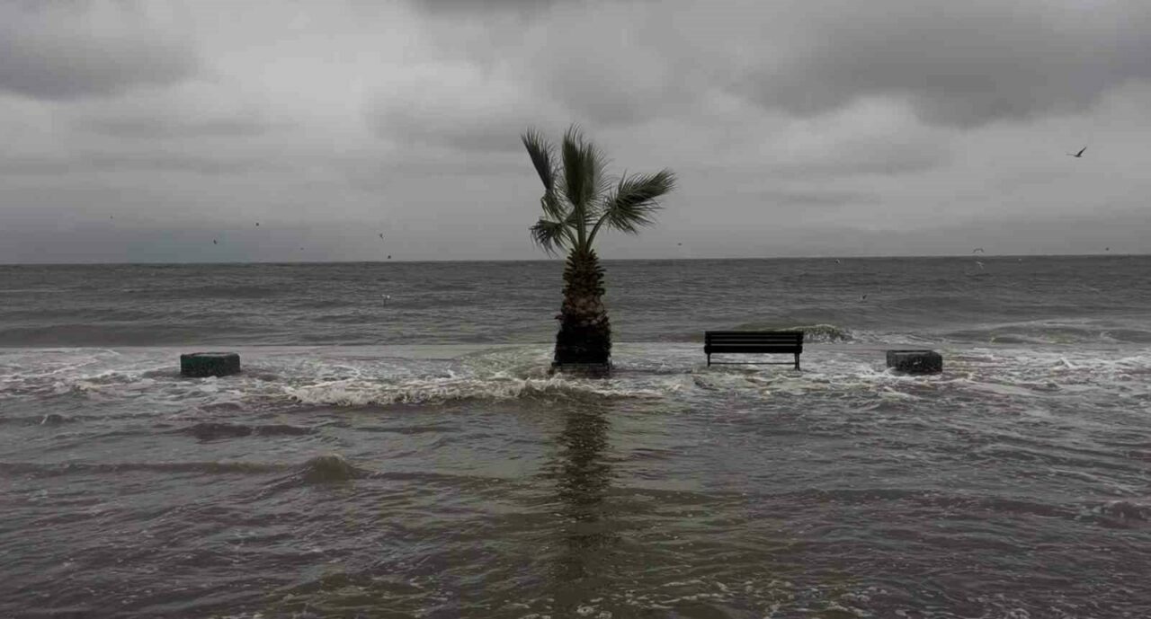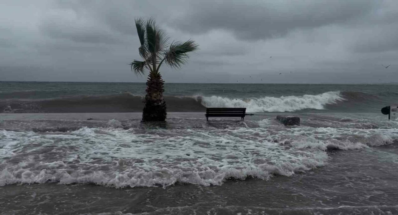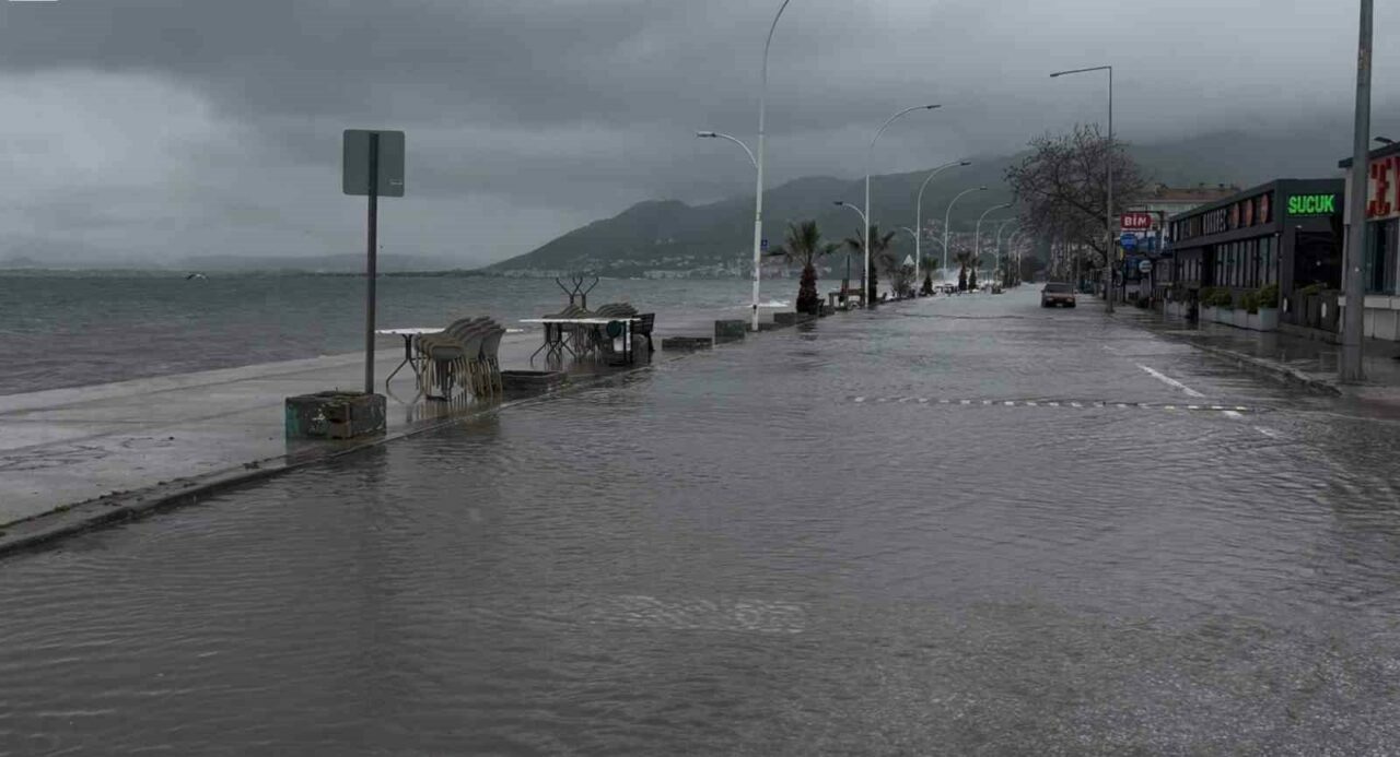 Denizin taşmasıyla birlikte sağanak yağışın da etkisiyle sokaklar kısa sürede göle döndü.