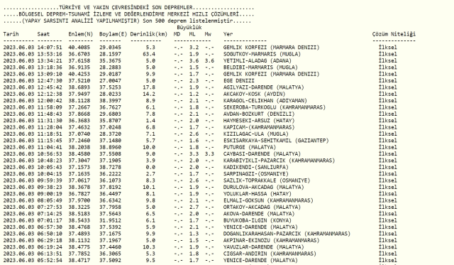 Derinlik: 5.3 km#Kandilli— Kandilli Rasathanesi (@Kandilli_info) June 3, 2023