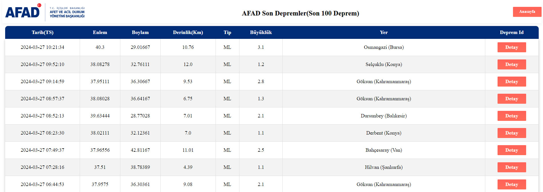 AFAD’dan alınan son bilgilere göre, Bursa’nın Osmangazi ilçesinde saat 10:21’de 3.1 büyüklüğünde deprem meydana geldi.