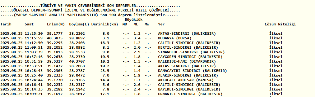 Bursa’nın Mudanya açıkları olan Gemlik Körfezi’ndeki depremin büyüklüğünü Kandilli Rasathanesi 3,4 olarak açıkladı.