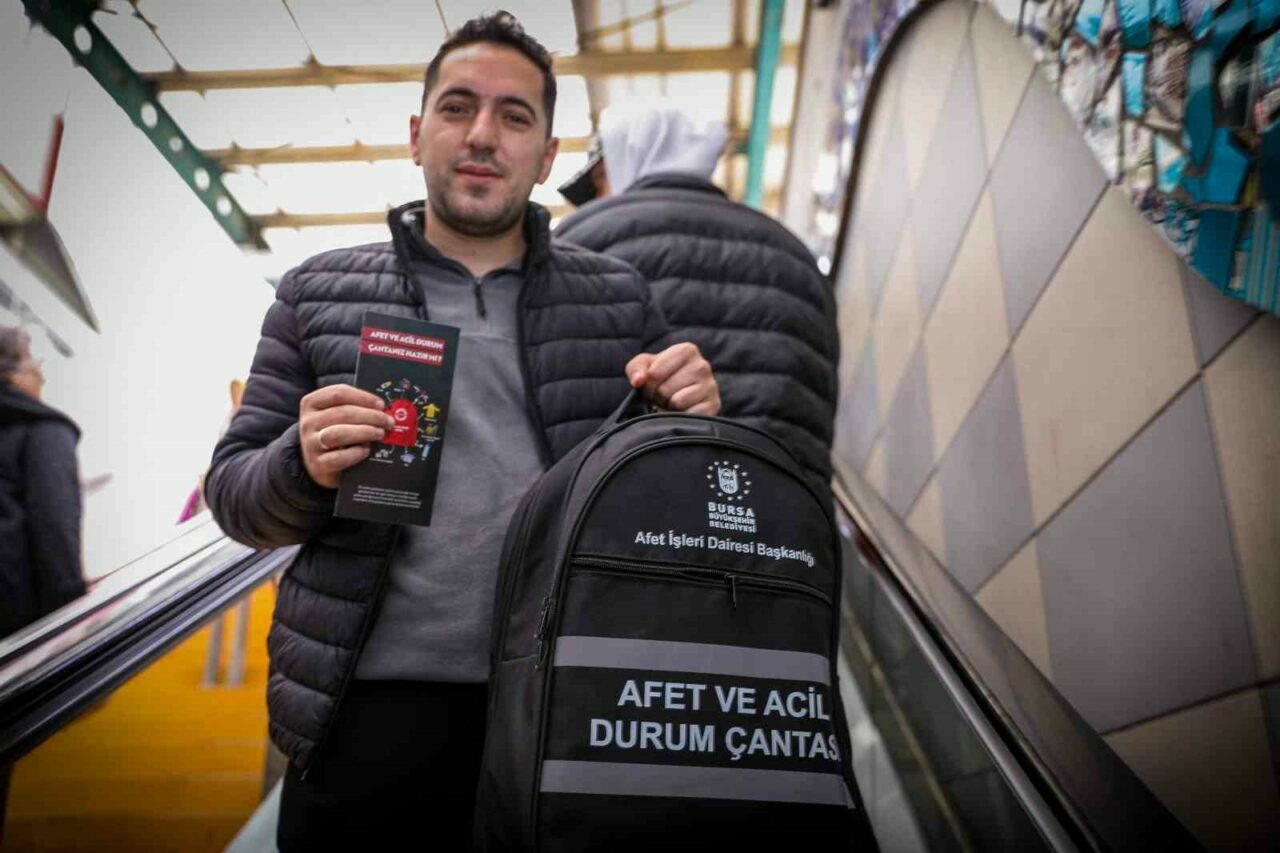 Beşeveler BursaRay İstasyonu’ndan metroya binerek vatandaşlarla birlikte Şehreküstü İstasyonu’na kadar yolculuk yapan Başkan Mustafa Bozbey, vatandaşlara AKOM tarafından hazırlanan ve içinde ilk yardım kiti, battaniye, radyo, el feneri, diş fırçası, yağmurluk, düdük ve çöp torbası bulunan afet ve acil durum çantaları dağıttı. Yolculuk boyunca Bursalılarla afet konusunda sohbet eden Başkan Mustafa Bozbey, afetlere hazırlıklı olmanın önemine vurgu yaptı.