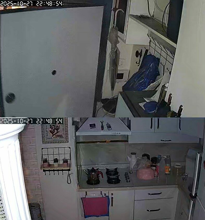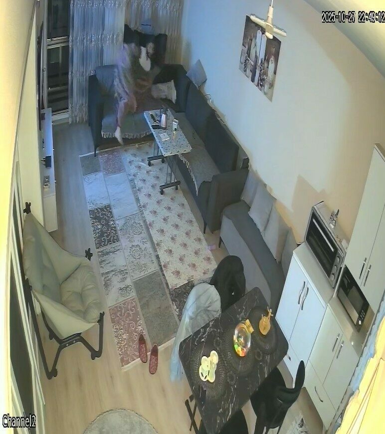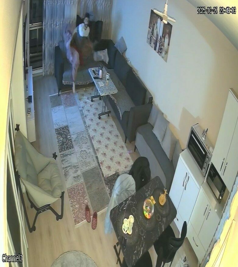 Evin diğer tarafındaki güvenlik kamerası görüntülerine de sarsıntı net bir şekilde yansıdı. (DHA)