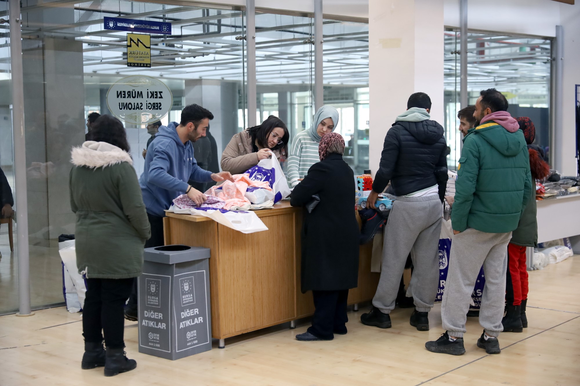 Yüzyılın felaketinde yaralar devlet millet işbirliğiyle tam bir seferberlik halinde sarılıyor. Seferberliğe, Büyükşehir, ilçe belediyeleri, kamu kurumları ve gönüllülerle birlikte toplam 2 bin 177 personel, 311 araç, 212 iş makinesi, 7 arama kurtarma köpeği ile destek veren Bursa, özellikle yardım toplama konusunda da örnek bir çalışma sergiliyor. Büyükşehir Belediyesi tarafından ‘Sımsıkı sarılacağız, yaralarımızı saracağız’ sloganıyla başlatılan yardım kampanyası ile bugüne kadar Bursa’dan toplam 740 yardım tırı bölgeye ulaştırılırken, Bursa Büyükşehir Belediyesi örnek bir çalışmaya daha imza attı. Atatürk Kongre ve Kültür Merkezi’nin sergi salonları Bursa’ya gelen deprem mağdurları için mağazaya dönüştürüldü.