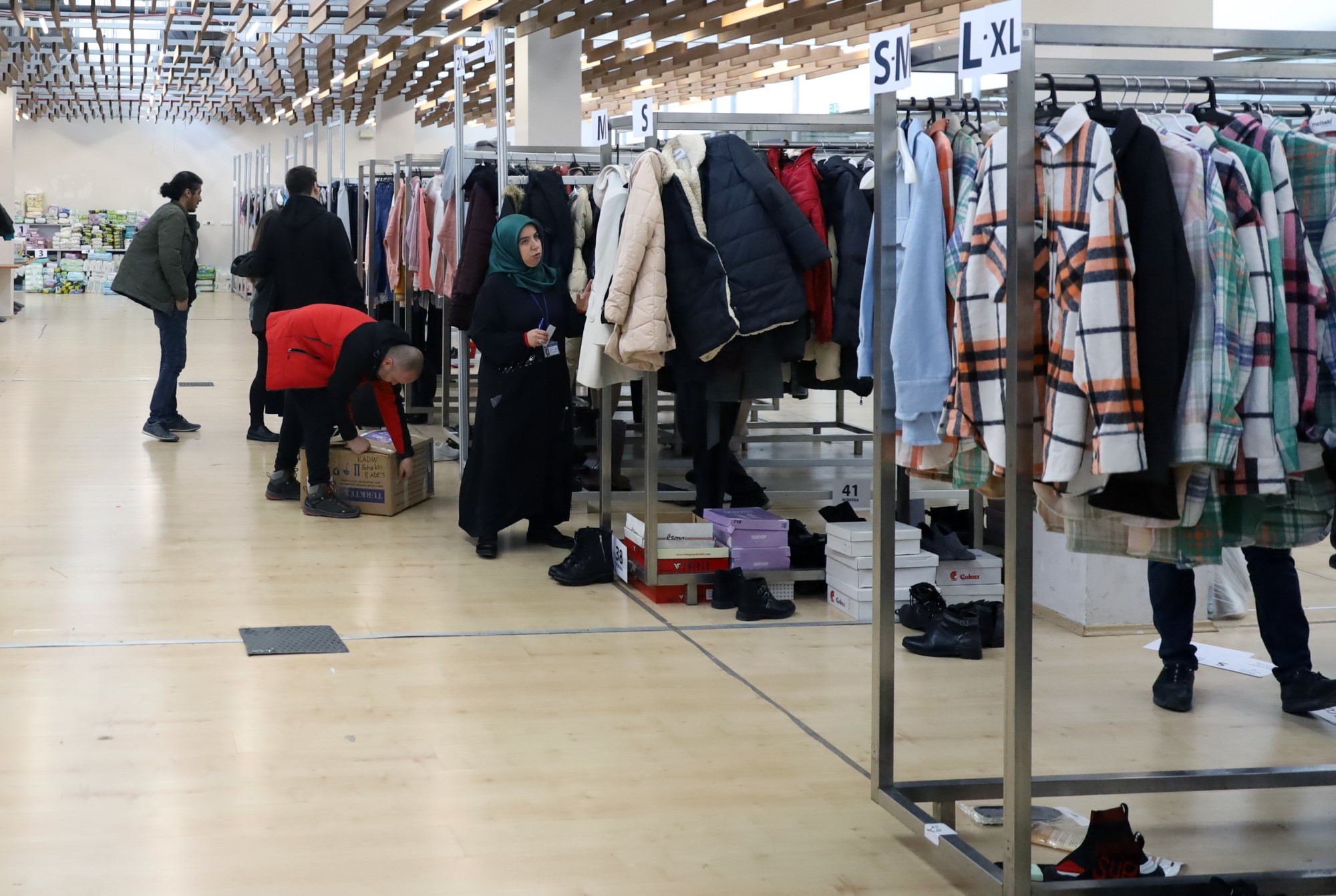Kimileri enkaz altından çıkarılan, kimileri ise akrabalarını, yakınlarını, varını yoğunu kaybedip Bursa’ya gelen deprem mağdurlarının ihtiyaçlarının karşılanması için de seferberlik başlatıldı. Kongre merkezinin sergi salonları adeta bir mağaza gibi düzenlendi. Gönüllüler tarafından getirilen yeni eşyalar burada yaş gruplarına ve bedenlerine göre asıldı. Sadece yeni eşyaların yer aldığı mağazaya gelen afetzedeler, deneyerek, beğenerek seçtikleri giyimden hijyen malzemelerine kadar tüm ihtiyaçlarını gönül rahatlığı ile alabiliyor. Tam bir hüznün hakim olduğu mağazada depremzedelerin yaşadığı korku, acı ve keder gözlerden okunuyor.
