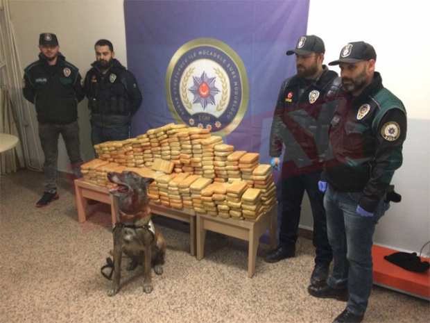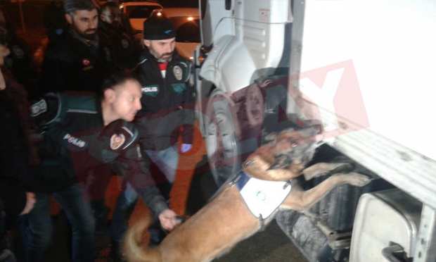 Acemler’deki Uyuşturucu ile Mücadele Şube Müdürlüğü’ne getirilen TIR’da Narkotik köpeği Alfa ile yapılan aramada, gizli bölümlere saklanmış, ilk belirlemelere göre 162 kilo 320 paket eroin ele geçirildi, TIR şoförü de gözaltına alındı.