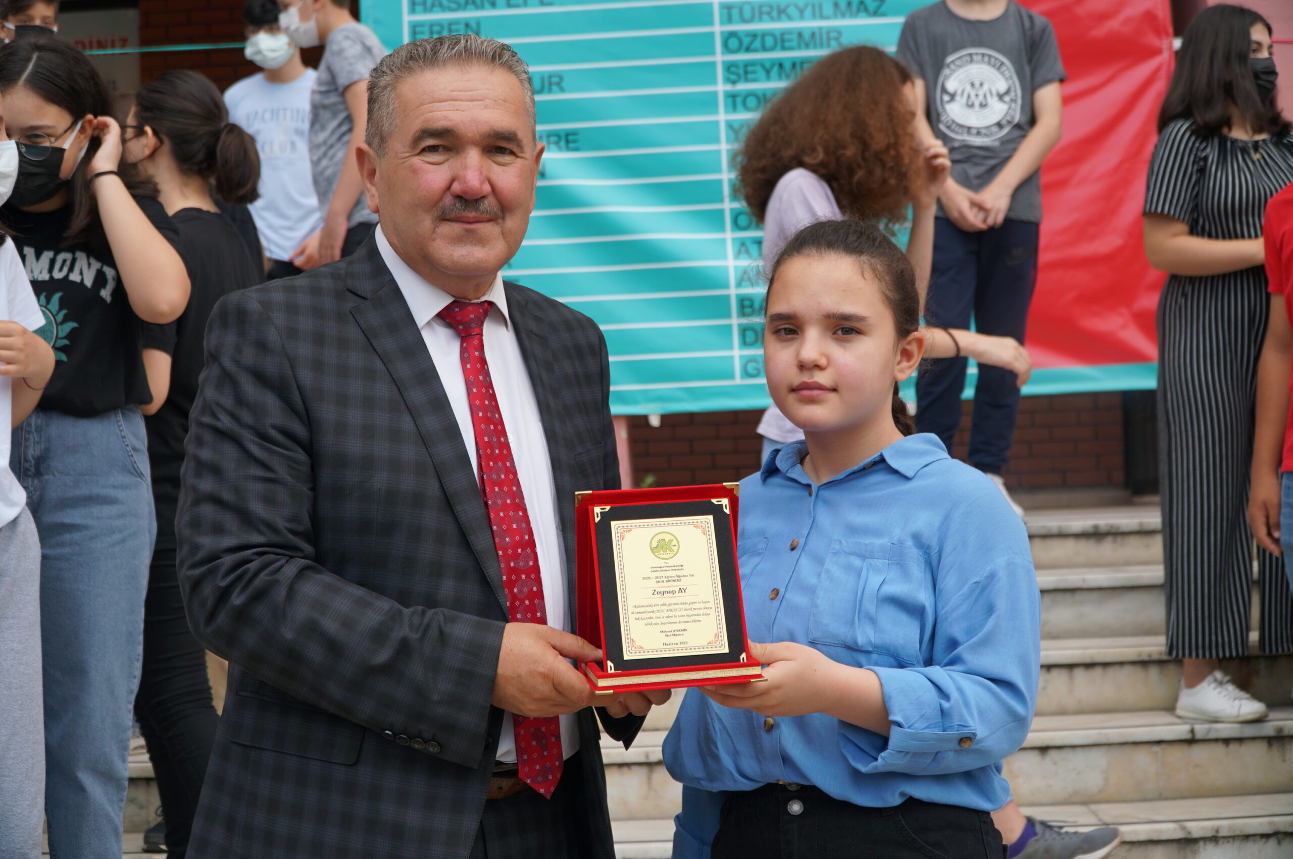 Okulda bulunan 420 8. sınıf öğrencisinden 80 öğrencinin Fen ve Anadolu Liselerine girmeye hak kazandıklarını da belirten Aydemir, şu ifadeleri kullandı: “Önceki dönemlerde 2 Türkiye birincisi, daha sonrasında ise 7 Türkiye birincisi çıkardık. Bu yılda 2 öğrencimiz 2 boş bırakarak diğer soruların tümünü doğru yanıtladı. 19 öğrencimiz de Bursa merkezde bulunan 3 Fen Lisesi’ne gitmeye hak kazandı.”