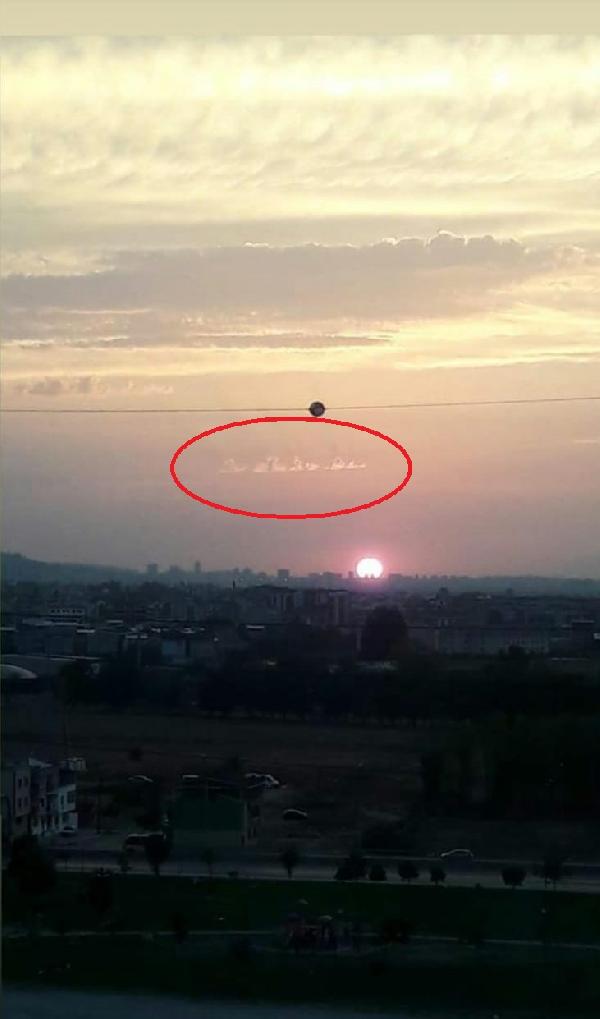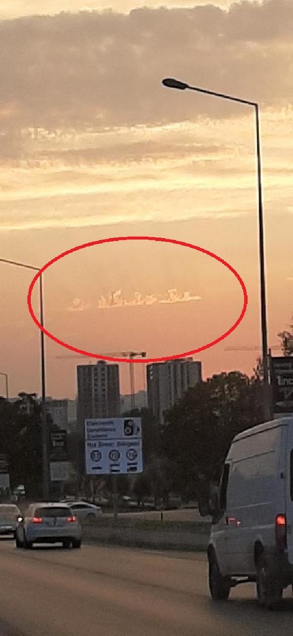 Yüzlerce hesabın etkileşim gösterdiği görüntülerde yer alan bulutların şekli yazıya benzetildi.