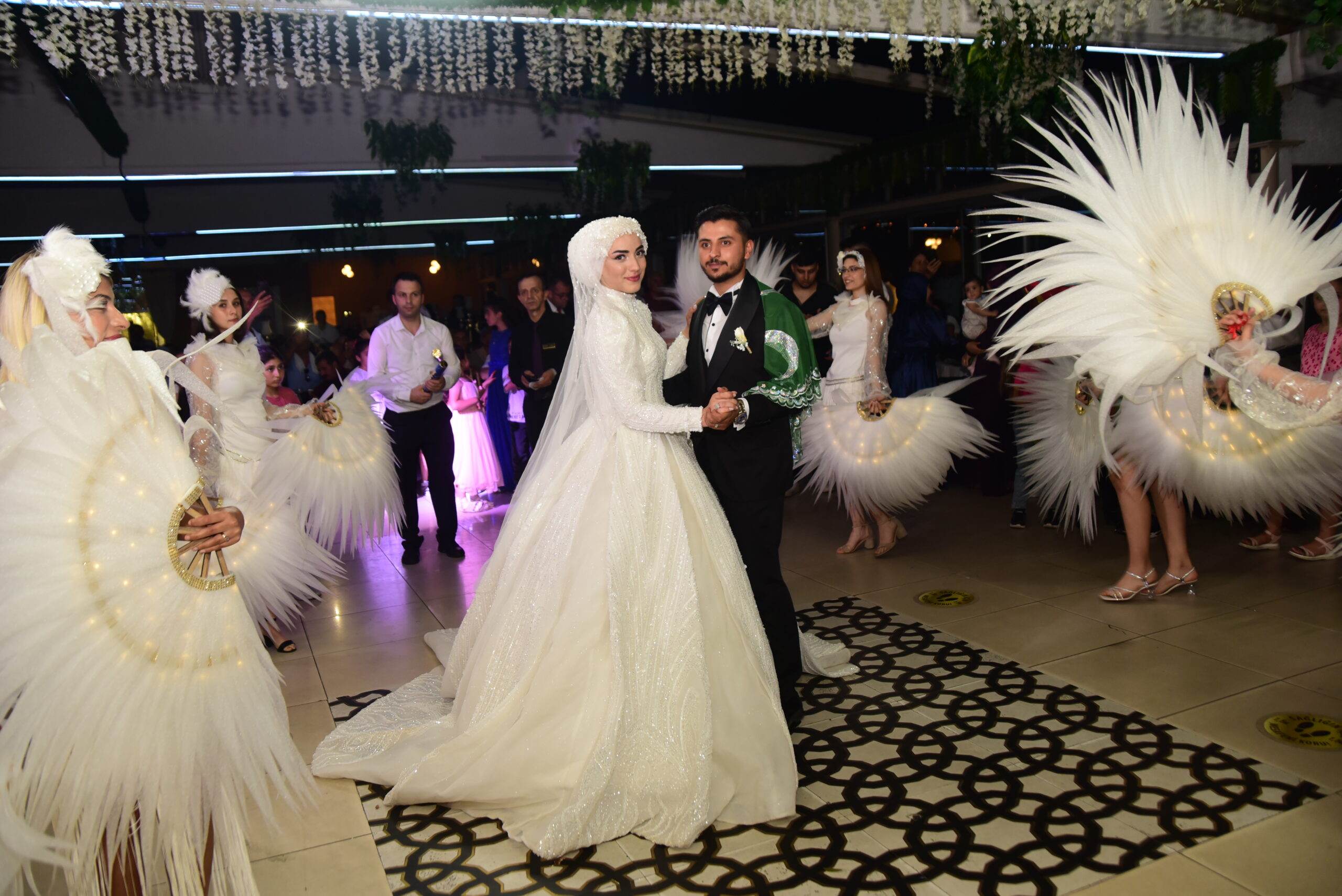 Büyük ilgi gören Sultan Salonları’ndaki düğünde birbirlerine bir ömür boyu ‘evet’ diyen çifte nikah cüzdanlarını ise Sedat Karataş takdim etti.
