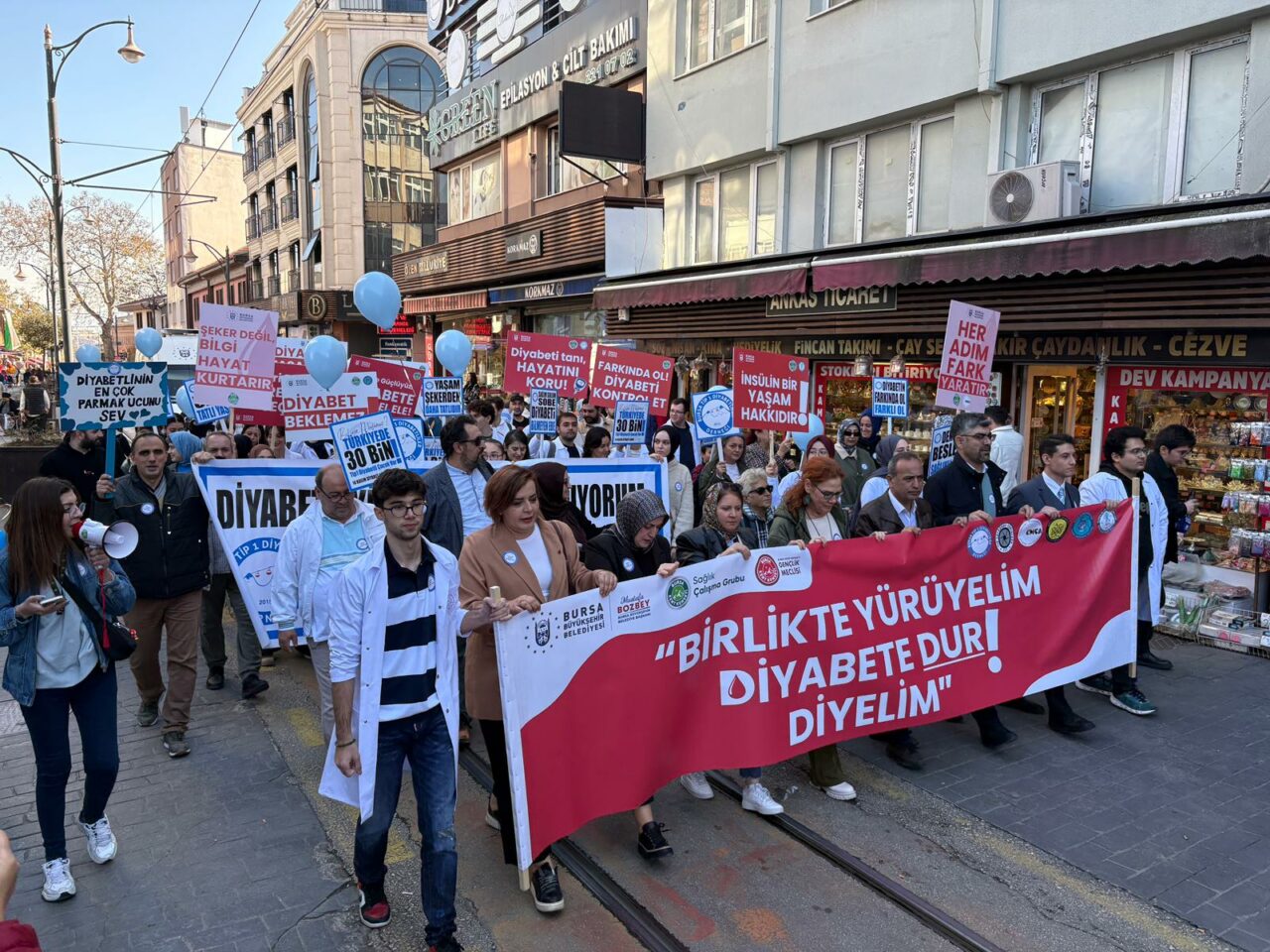 Etkinliğin temel amacını açıklayan Yurdakoş, “Vatandaşlarımızı diyabet konusunda bilgilendirmek, toplumsal bilinci güçlendirmek ve sağlıklı yaşam alışkanlıklarını teşvik etmektir. Diyabet düzenli takip, dengeli beslenme, fiziksel aktivite ve erken tanı ile kontrol altına alınabilir. Farkındalık yürüyüşümüz yalnızca bir etkinlik değil; daha bilinçli bir toplum için hep birlikte attığımız güçlü bir adımdır” diye konuştu. Etkinlik sonunda diyabet hastası çocuklar mavi balonlarını hep birlikte gökyüzüne bıraktı.