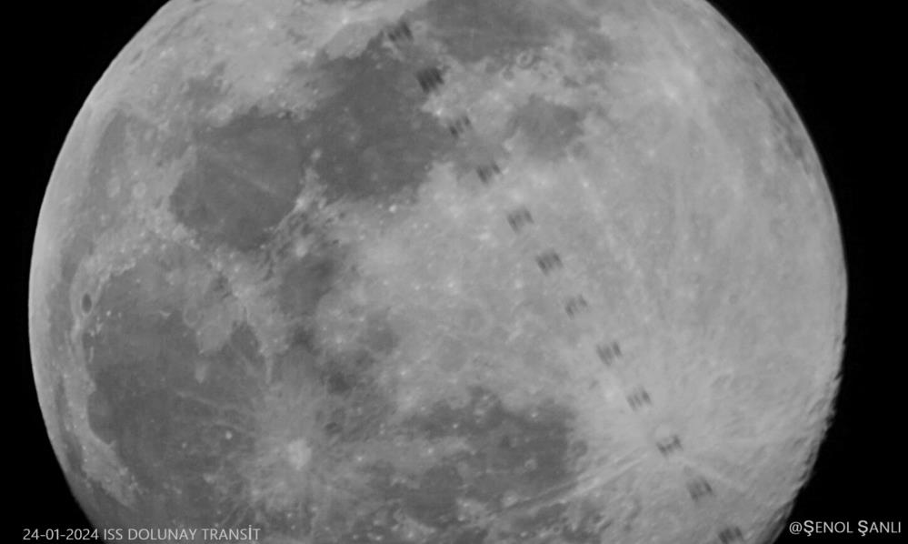 İçinde Alper Gezeravcı’yı taşıyan saatte 28 bin kilometre hızla giden Uluslararası Uzay İstasyonu’nu Bursa’nın İznik ilçesinden geçerken kendi yaptığı teleskopla dolunay ile birlikte görüntüledi.