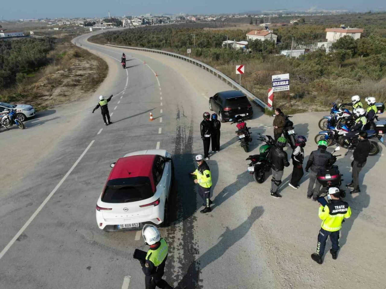 Bursa’nın Gemlik ilçesi Kurşunlu Mahallesi ve Gemlik-Mudanya Çevreyolu’nda İl Jandarma Komutanlığı Trafik Şube Müdürlüğüne bağlı Trafik Jandarma Timleri, Asayiş Timleri ve sivil ekiplerin katılımı ile motosiklet kullanıcılarına yönelik denetim gerçekleştirdi.