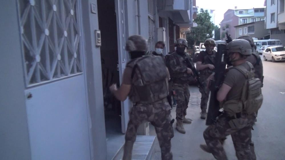 Bursa genelinde 8 kişi yakalanıp gözaltına alınırken, şüphelilerin evlerinde drone ve narkotik köpeğiyle yapılan aramalarda 150 gram Metamfetamin, 50 gram bonzai, 50 gram esrar, 10 gram eroin, 1 adet hassas terazi, 2 adet ruhsatsız tabanca ve çok sayıda fişek ele geçirildi.