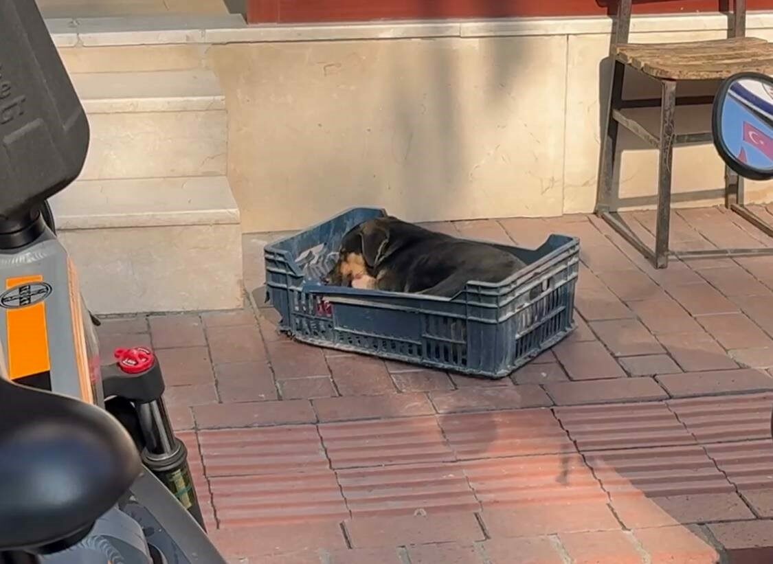 Araç sürücüsünün çarparak yaralı halde bıraktığı köpeği gören duyarlı üniversite öğrencileri yaralı köpeği şeftali kasasına koyarak zabıta ekiplerine götürdü.