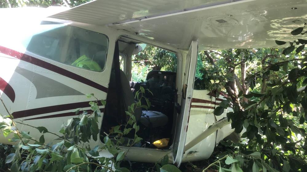 Cesna 172 tipi eğitim uçağı, Çeltik Mahallesi’nde bir meyve bahçesine mecburi iniş yaptı.