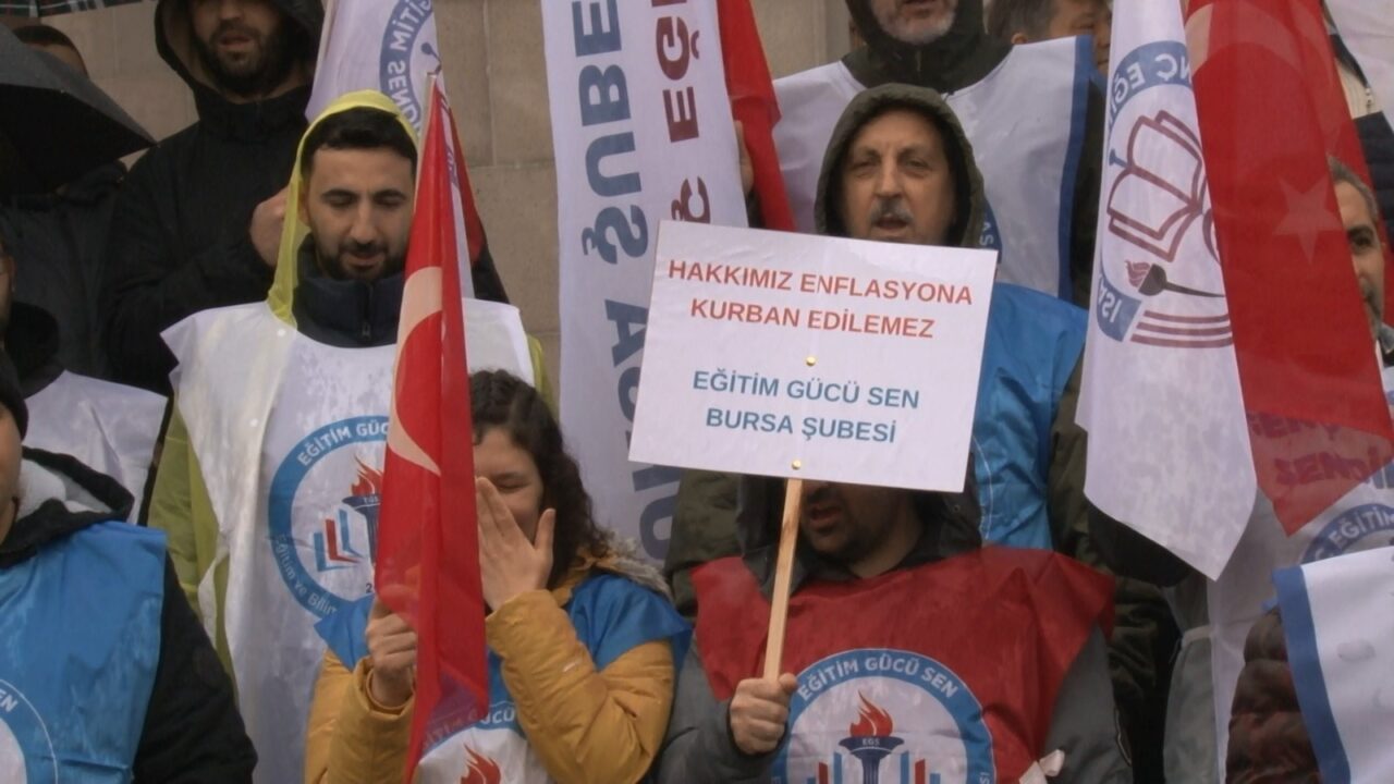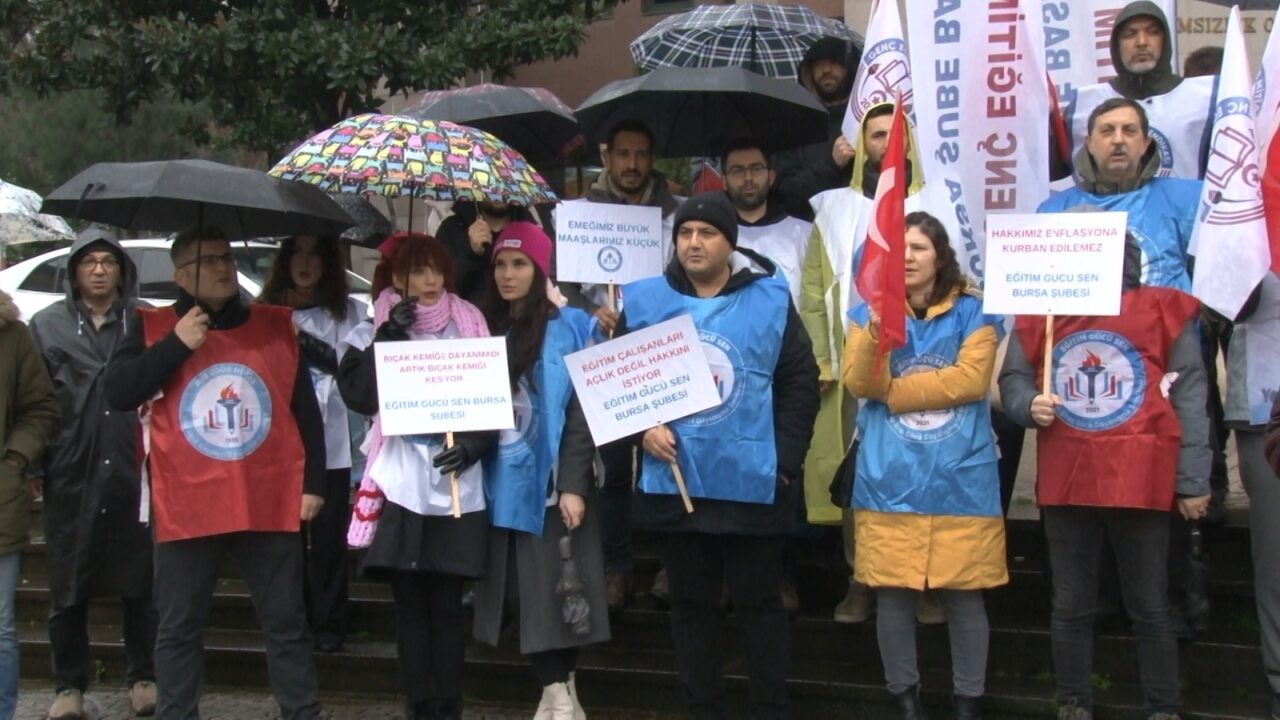 Kamu çalışanlarına verilen yüzde 11,45’lik zammı protesto eden eğitimciler Bursa İl Milli Eğitim Müdürlüğü önünde basın açıklaması düzenledi.