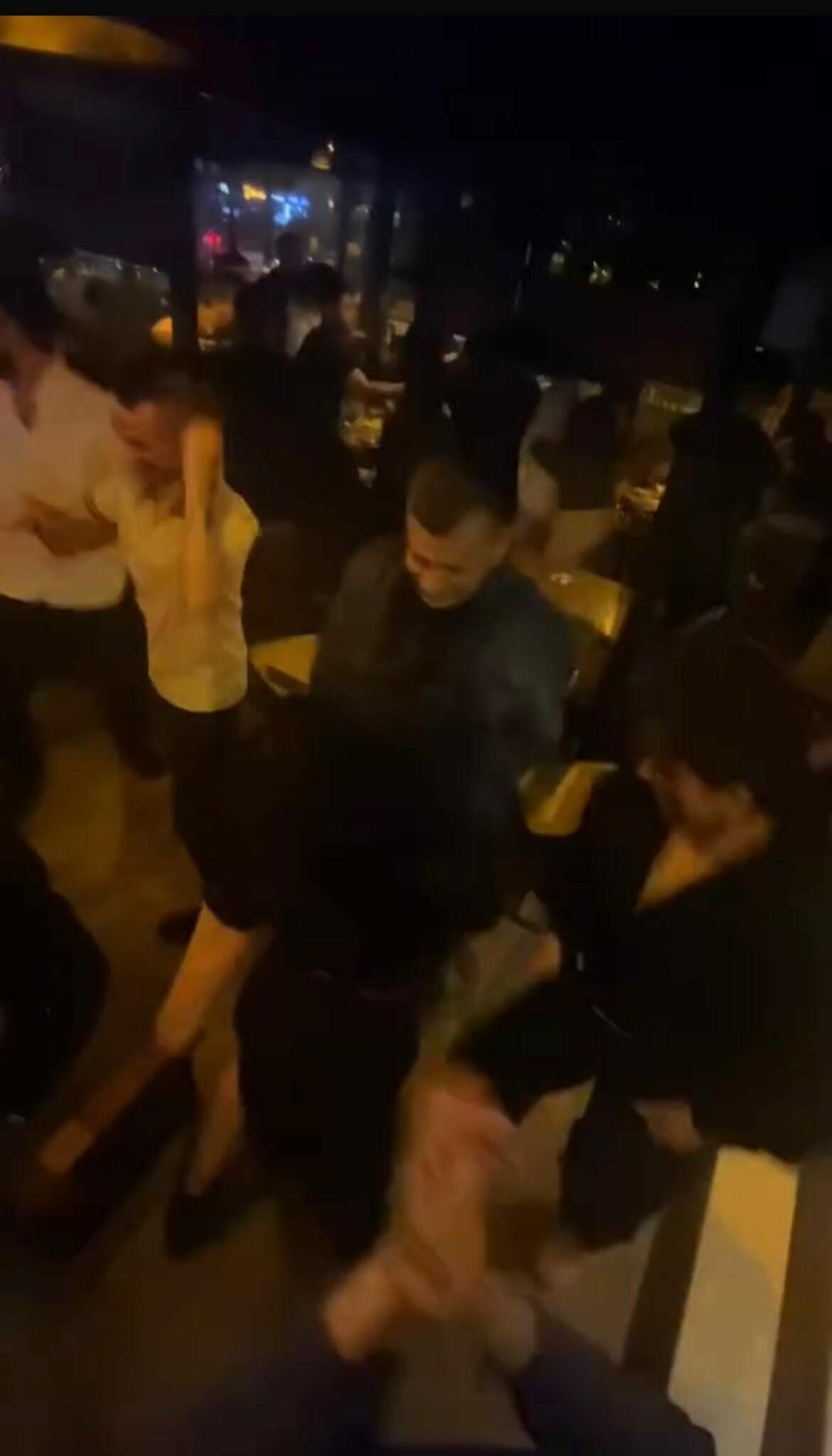 Tartışma büyüyerek tekme ve yumruklu kavgaya dönüştü. Kavgayı çevredekiler ayırmaya çalışırken, yaşananlar mekanda eğlendikleri anları kaydetmek isteyen bir kişinin cep telefonuna yansıdı.