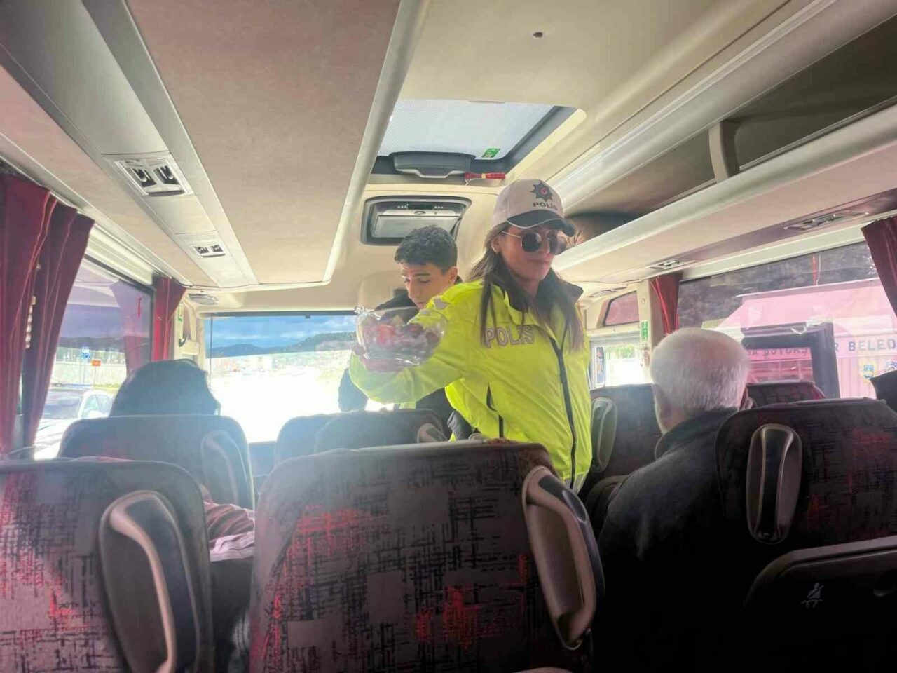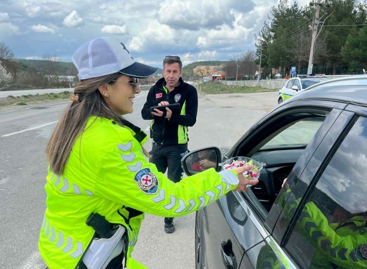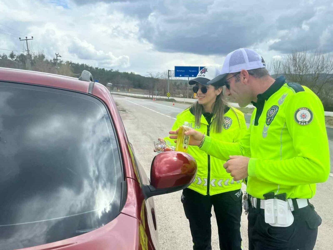 Bayram coşkusunu yollara taşıyan trafik ekipleri, sürücülerin güvenli bir şekilde sevdiklerine ulaşmalarını sağlamanın yanı sıra, onlara bayramın geleneksel tatlarından sunarak hoş bir jest yaptı.