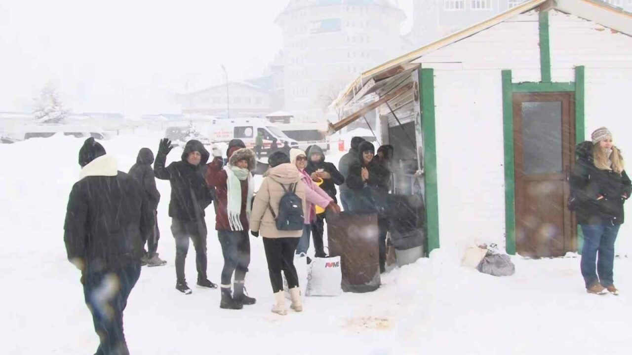 2. Oteller Bölgesi’ndeki Bursa Büyükşehir Belediyesi’ne bağlı BURFAŞ Uludağ Sosyal Tesisleri’ne gelen turistler, yoğun kar yağışı altında bir yandan sıcak kahvelerini yudumlarken bir diğer yandan da tesiste çalan müziklerle dans ederek ısındı.