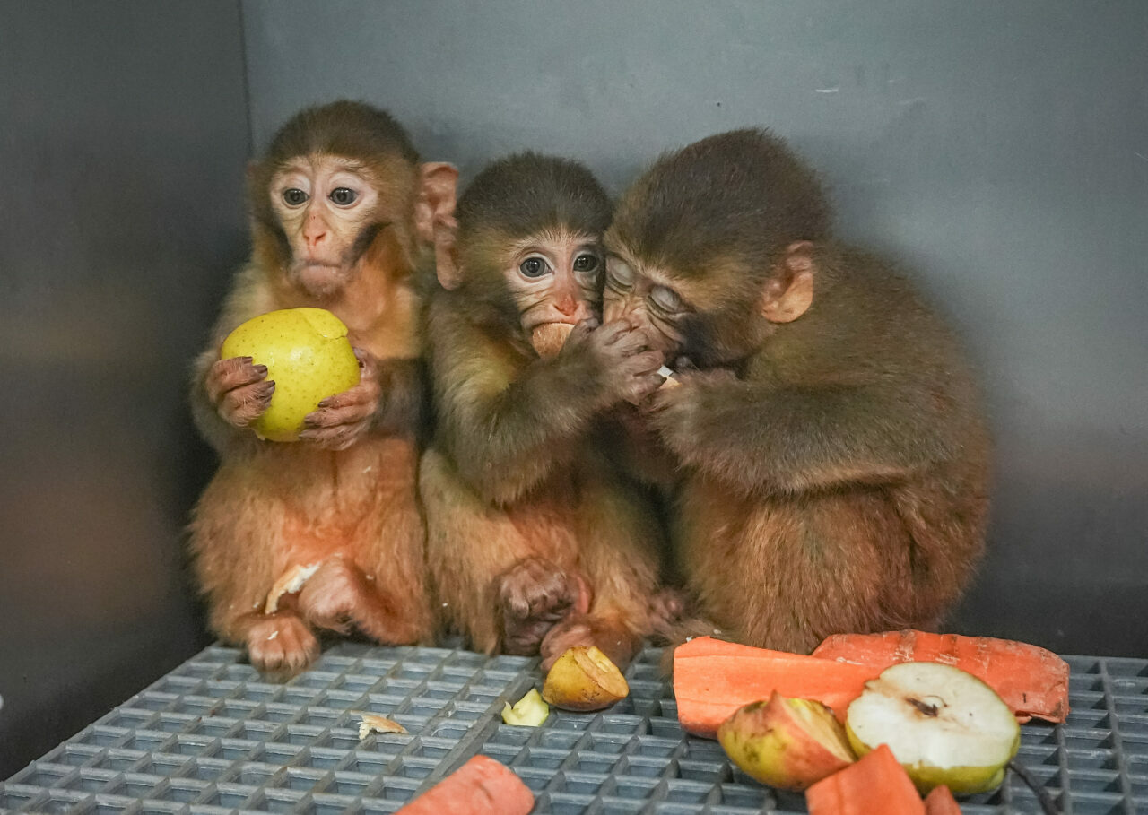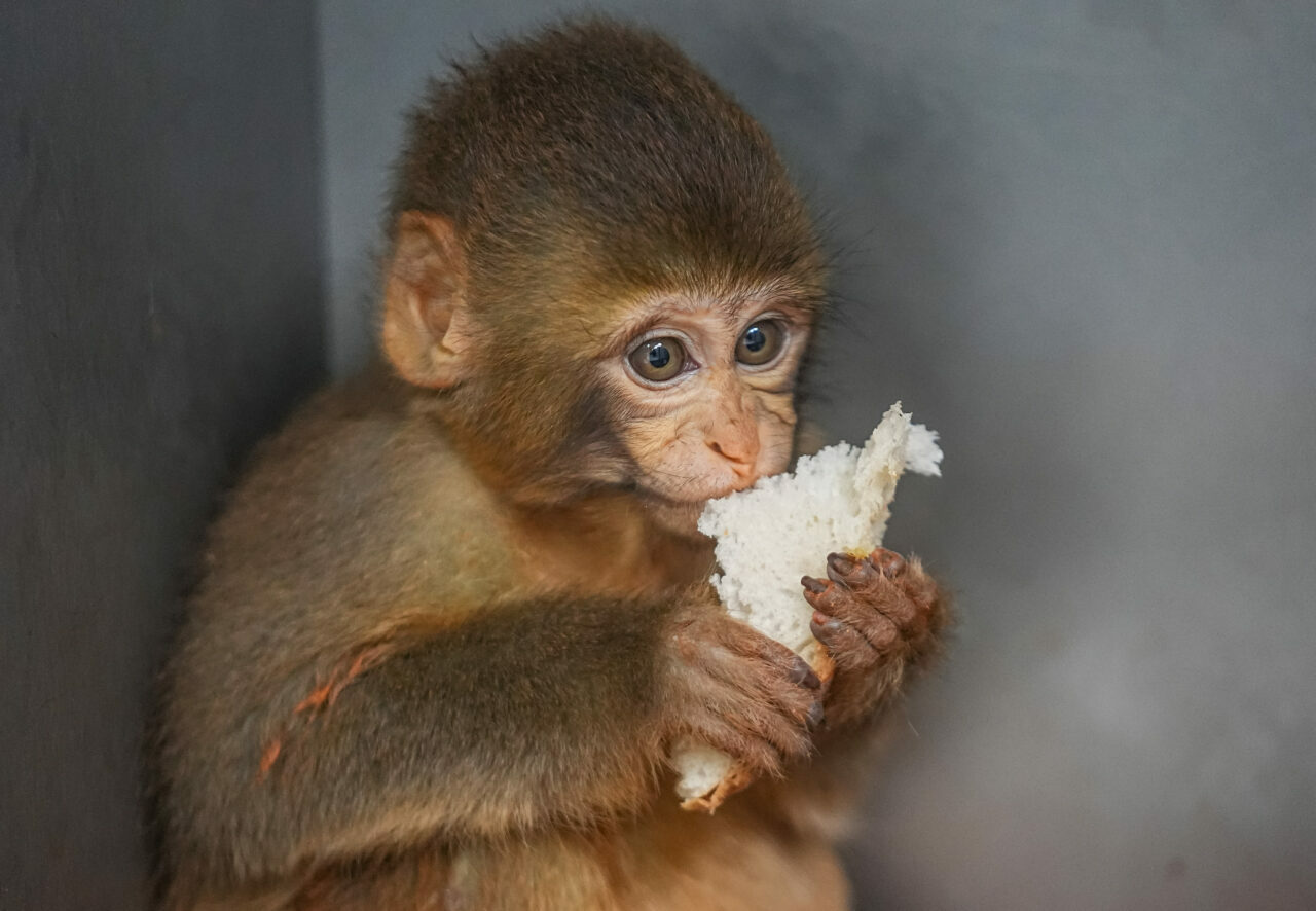 Günde 2 öğün elma, armut, havuç, ayva gibi meyvelerle birlikte fıstık ve merkezin fırınında özel olarak üretilen ekmeklerle beslenen maymunların gelişim süreçleri veteriner hekimlerce yakından takip ediliyor.