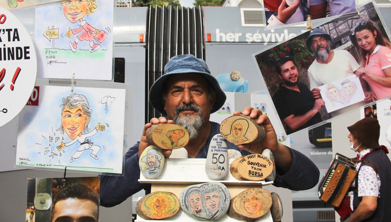 Akkoç, karikatür portreler çizdiği parkta başından pek çok komik olayın geçtiğini anlattı.