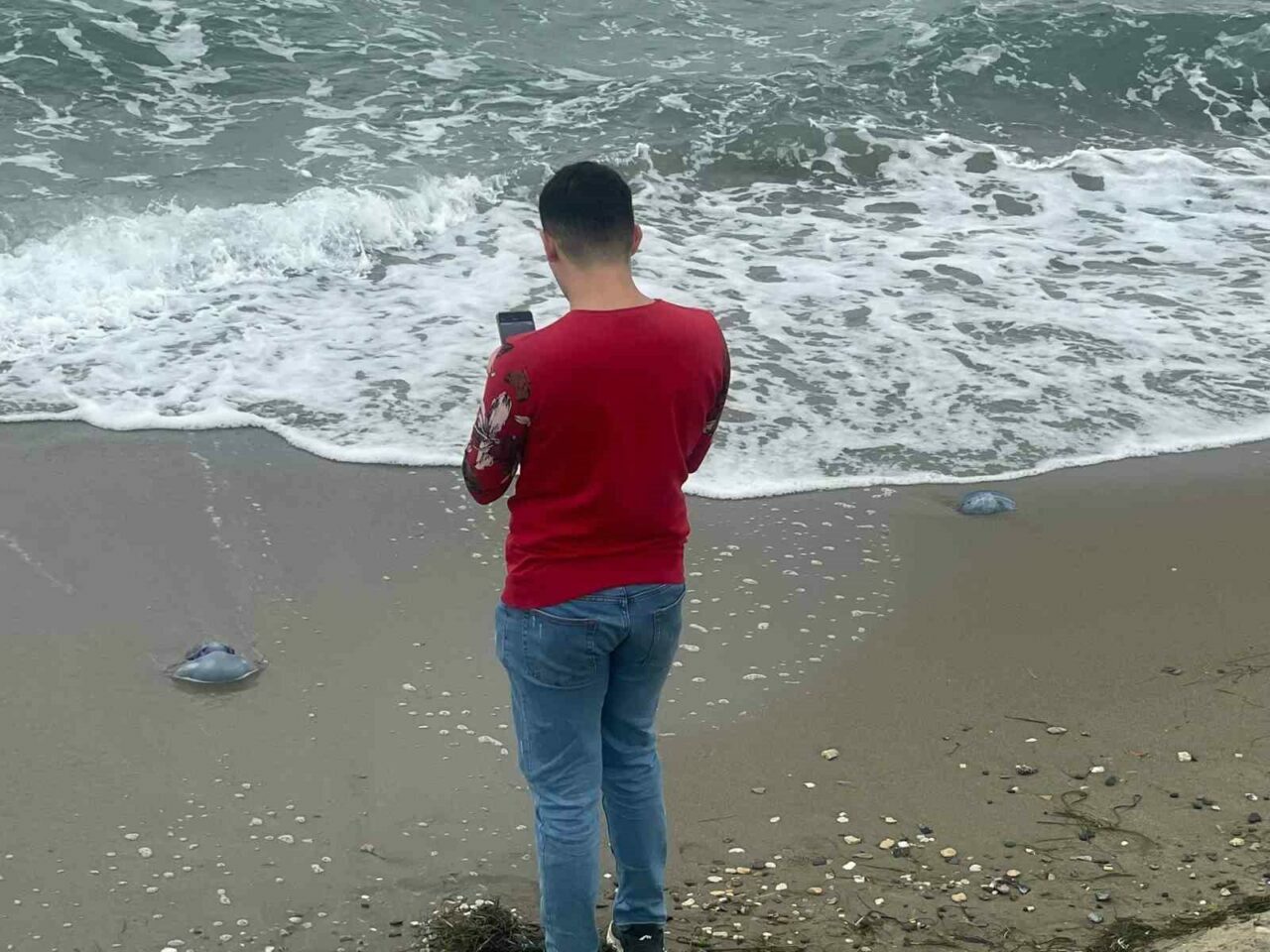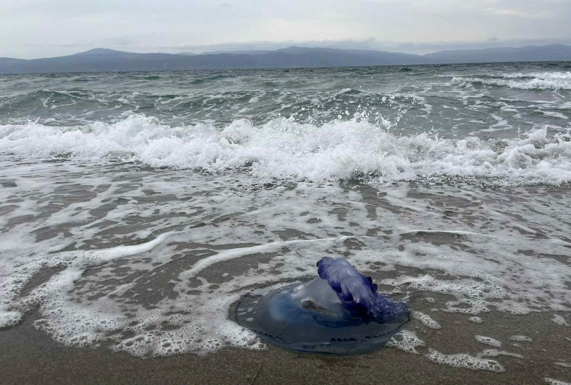 Gemlik ve Mudanya’da bir süredir denizanası kabusu yaşanıyordu. Canlılara ve balık ağlarına zarar veren denizanaları havanın soğuması ve fırtına ile birlikte sahillere vurmaya başladı. Mudanya Güzelyalı sahillerinde yürüyüş yapanlar mavi denizanaları ile karşılaştı.