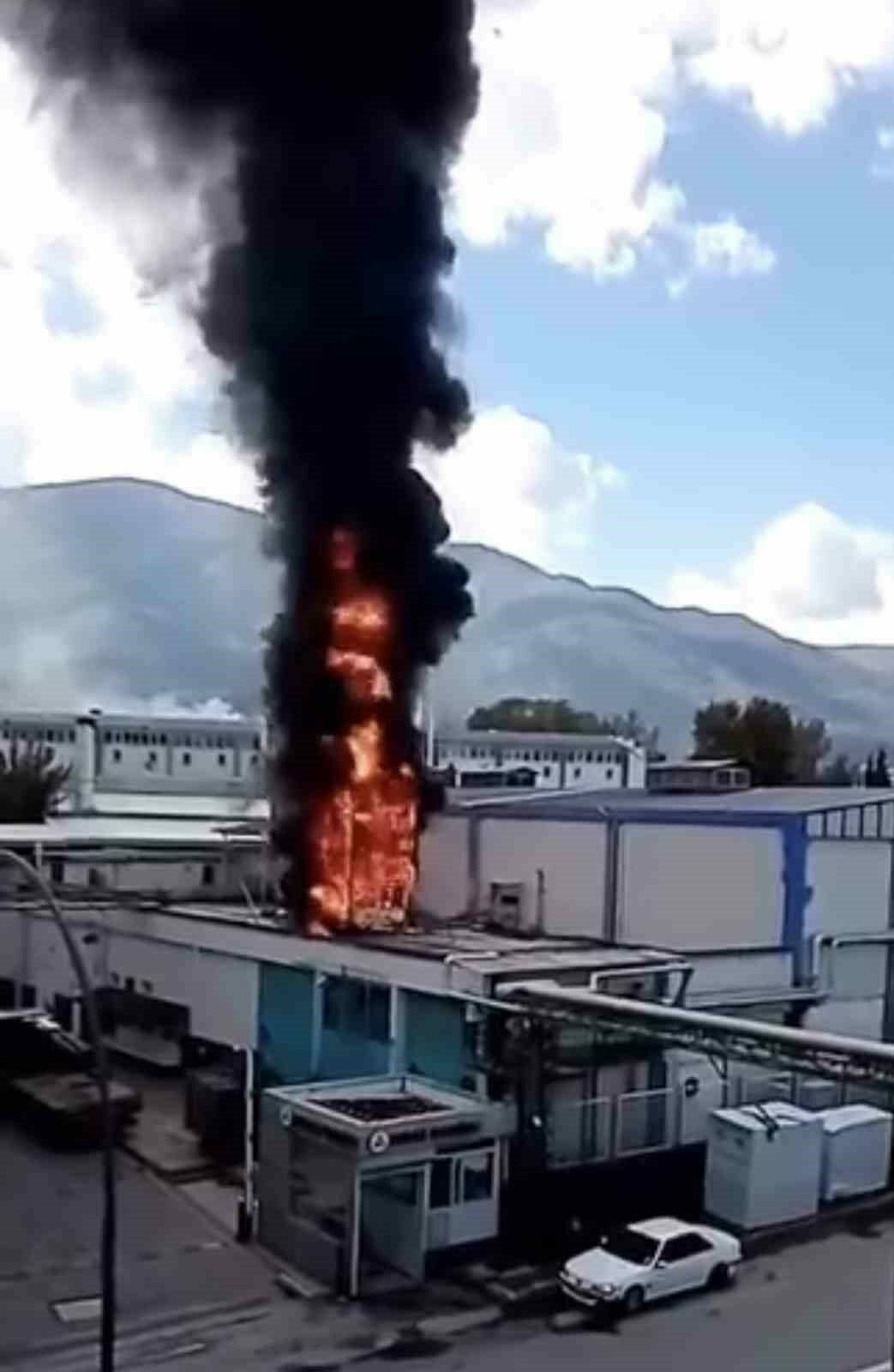 Yangın sırasında fabrikanın bir bölümü alev alev yandı, yükselen alevler çevrede korku dolu anlar yaşattı.