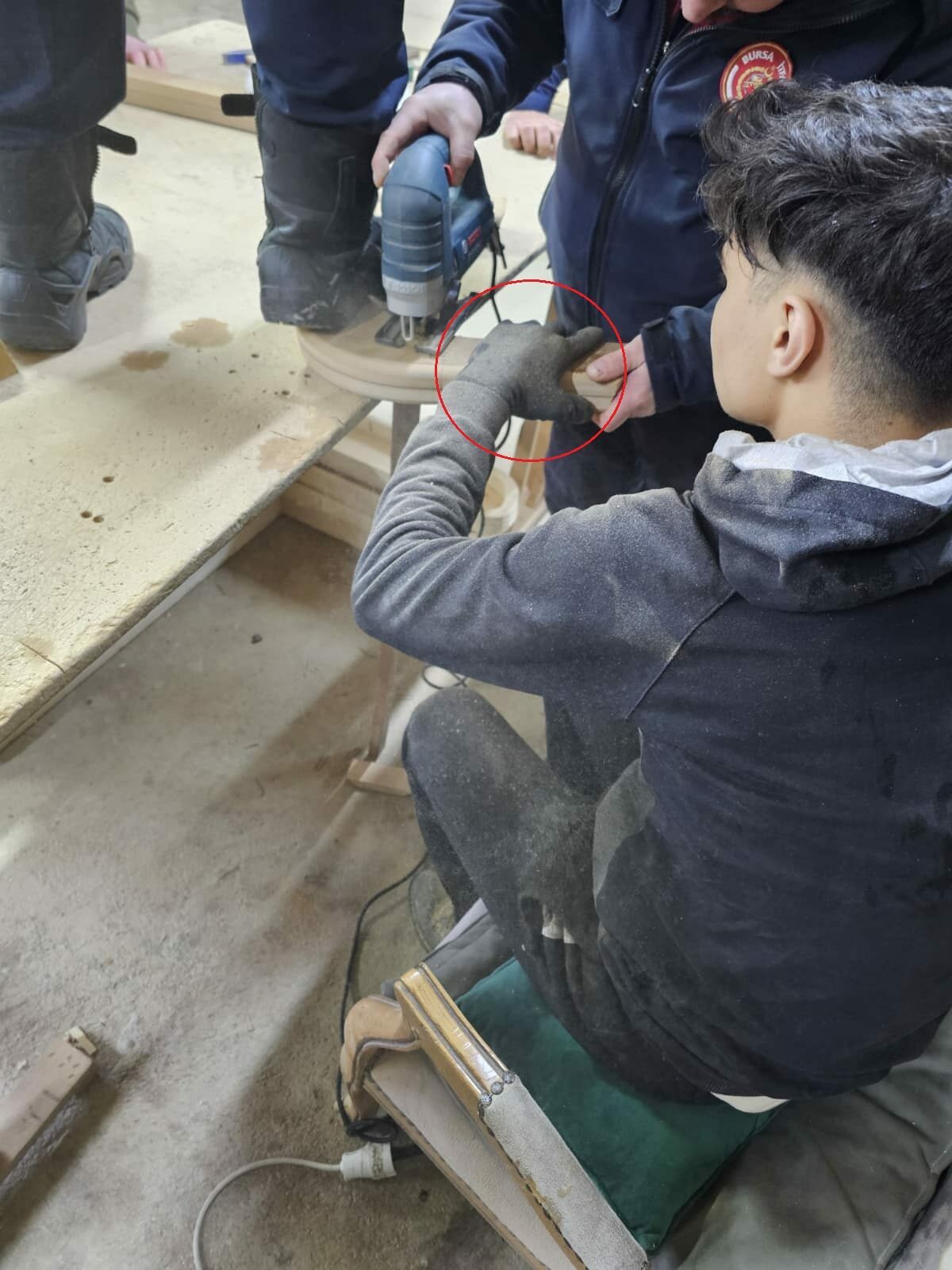 Muhammed A., çivi tabancasıyla çalışırken fırlayan çivi sol eline saplandı. Muhammed A.’nın eli ahşaba çakılı halde kaldı.