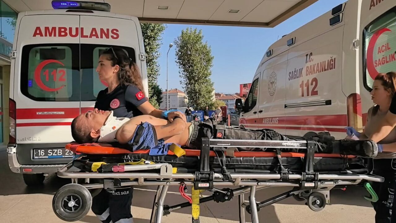 İş arkadaşları tarafından sıkıştığı yerden çıkarılan Mossa A., ambulansla İnegöl Devlet Hastanesi’ne kaldırıldı.