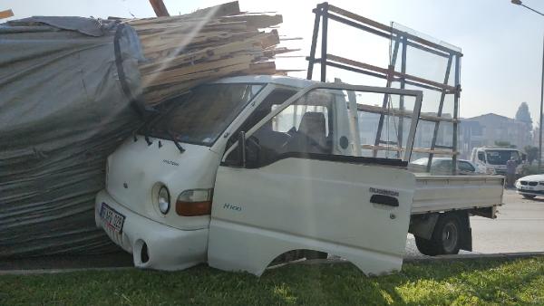 Kamyonet sürücüsü Ferhat Demir, “Kamyon dönüyordu, üzerimize devrildi. Kurtulduk, şükür” dedi.