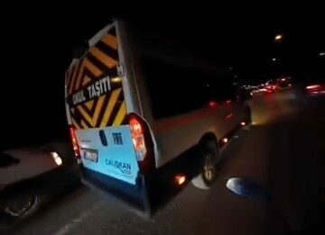 Bu sırada aynı güzergahta ilerleyen motosiklet sürücüsü, önündeki servis aracına çarpmamak için ani fren yaptı.