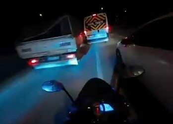 Tehlikeli anlar motosiklet sürücüsünün kask kamerası tarafından kaydedildi.