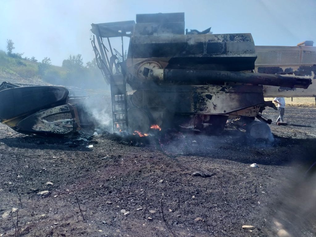 Bursa’nın Yenişehir ilçesine bağlı Mahmudiye köyünde çıkan yangında biçerdöver makinesi yanarak demir yığınına döndü.
