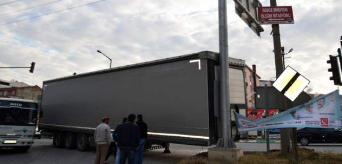 Kaza, Bursa-Yalova yolunun İznik kavşağında meydana geldi. Fevzi Akyıldız (41) idaresindeki otomobil parçaları yüklü 16 BT 965 plakalı TIR’ın İznik lambalarında dorsesi koptu. Hızla sürüklenen dorse kavşaktaki yön tabelasına çarparak durabildi. Bu sırada kırmızı ışıkta bekleyen araçların sürücüleri büyük korku yaşadı. Kepçe yardımıyla dorse yeniden TIR’a bağlanarak yol kenarına çekildi.