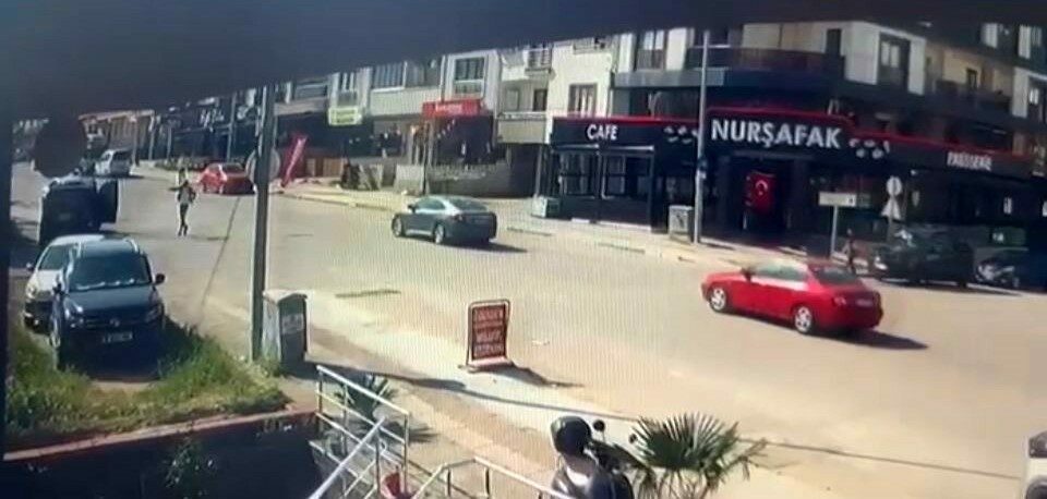 Sürücü tam aracın yanından ayrılacakken sürücüsüz şekilde harekete geçen araç, bir sağa bir sola gitti.