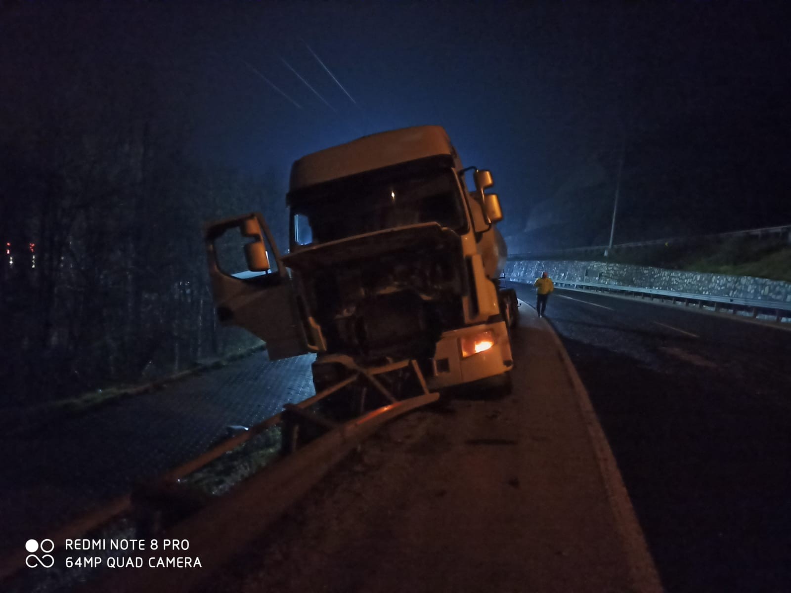 Savrulan tır, bariyerlere çarptı ardından metrelerce sürüklendi. Kazada facianın eşiğinden dönülürken sürücü kazayı yara almadan atlattı. Kaza sebebiyle araçta maddi hasar meydana geldi.