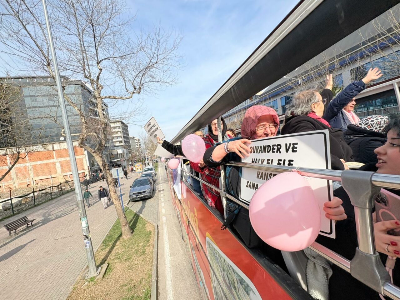 Kent Meydanı’ndan başlayan farkındalık konvoyu, Heykel ve Haşim İşcan Caddesi güzergâhını izleyerek Şehreküstü Meydanı’na ulaştı. Konvoy boyunca iki katlı otobüsün üzerine pembe meşaleler takılırken, vatandaşların yoğun ilgisi dikkat çekti. Etkinliğe katılanlar, güzergâh boyunca “Erken teşhis hayat kurtarır” sloganları atarak kanserle mücadelede farkındalık mesajı verdi. Otobüsü gören vatandaşlar ise el sallayarak destek verdi.