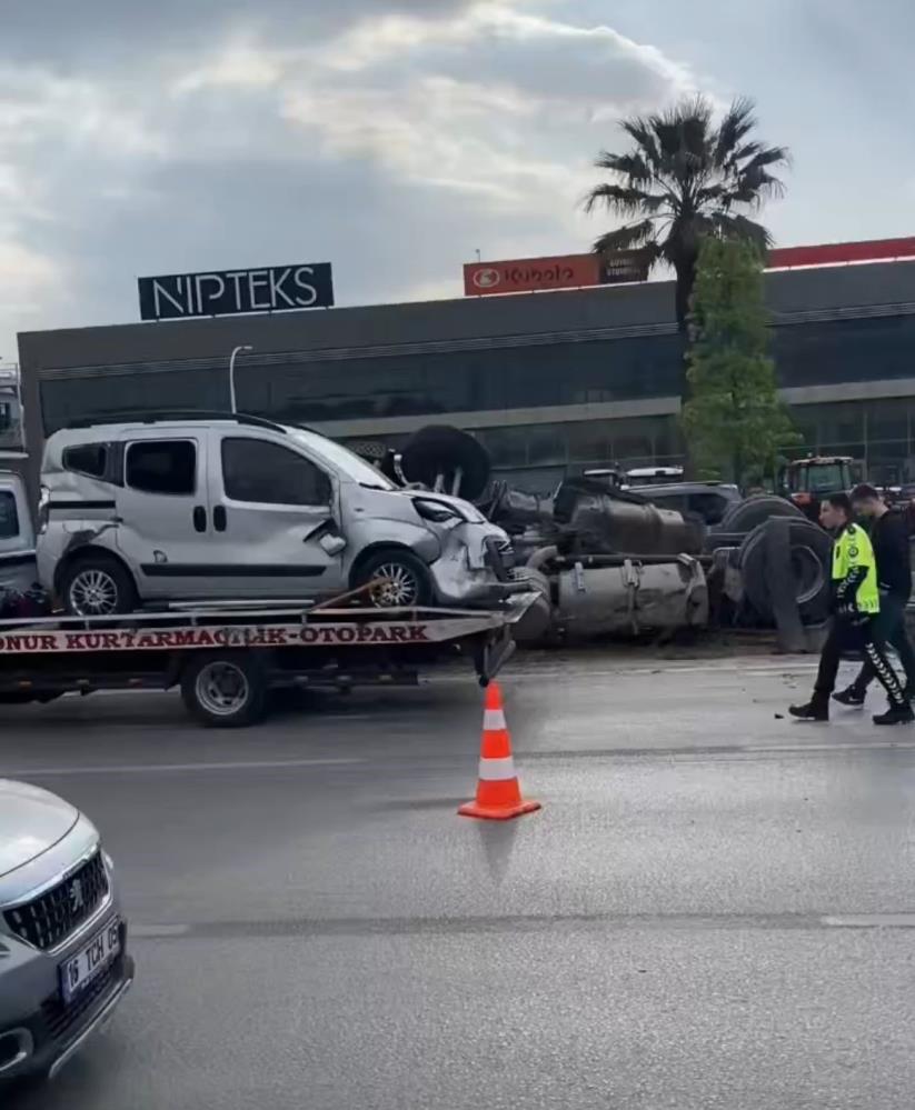 Merkez Nilüfer ilçesi Acemler mevkiinde ise hafif ticari araç ile otomobil çarpıştı. Kazanın etkisiyle hafif ticari araç yan yatıp metrelerce sürüklendi.