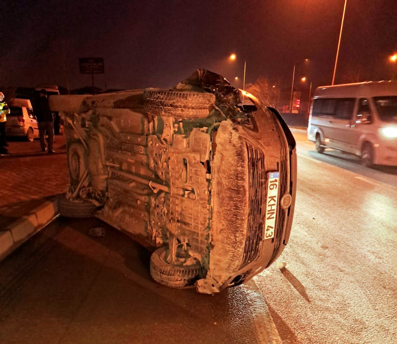 Enes Y. yönetimindeki 16 KHN 43 plakalı hafif ticari araç, önünde giden Cevdet A.’nın (41) kullandığı 16 ANN 569 plakalı otomobile çarpıp devrildi.