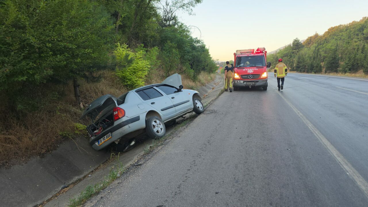 İnegöl’den Bursa istikametine giden Berat Ö. (25) idaresindeki 16 PD 666 plakalı otomobil, sürücüsünün direksiyon hakimiyetini kaybetmesi sonucu yol kenarındaki yağmur suyu kanalına devrildi.