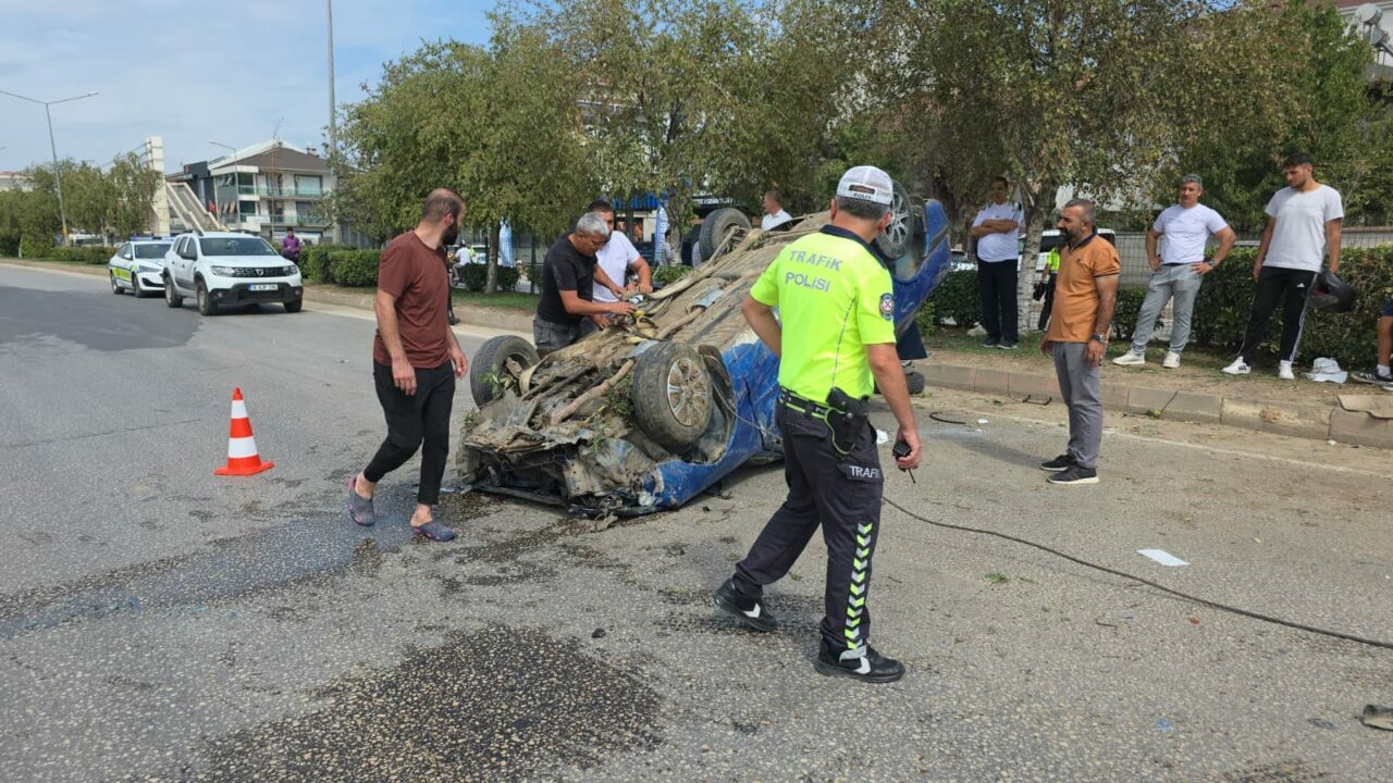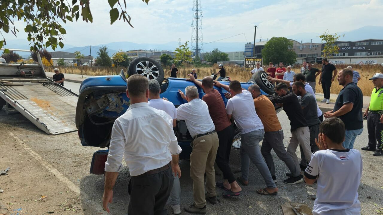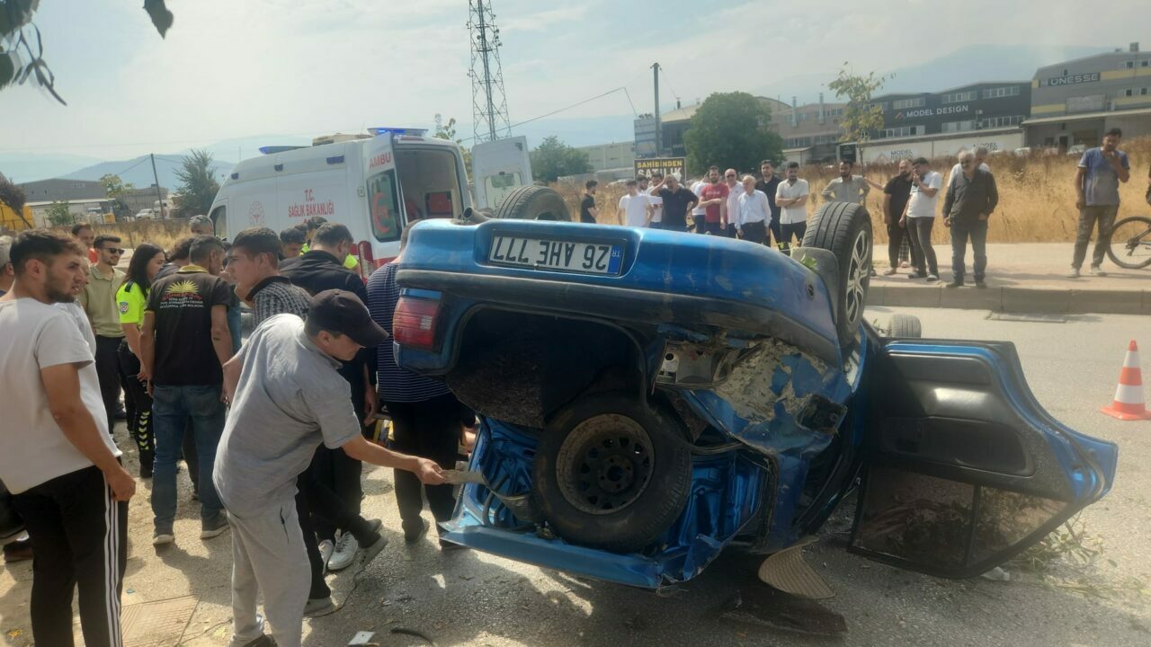 Hakan A. (21) idaresindeki 26 AHE 777 plakalı otomobil, Ertuğrul Gazi Mahallesi Alanyurt Caddesi’nde refüje çarptıktan sonra devrildi.