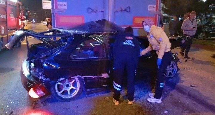 Kaza, saat 03.30 sıralarında Ankara Yolu Caddesi’nde meydana geldi. Edinilen bilgiye göre, Oktay S. (23) idaresindeki 16 APN 53 plakalı otomobil, Kestel istikametine doğru seyir halindeyken Yusuf Y. yönetimindeki 16 AT 315 plakalı hafif ticari araçla çarpıştı. Çarpışmanın etkisiyle direksiyon hakimiyetini kaybeden otomobil sürücüsü Oktay S. (23), cadde üzerinde park halinde bulunan 16 RS 365 plakalı tıra çarparak aracın altına girdi.