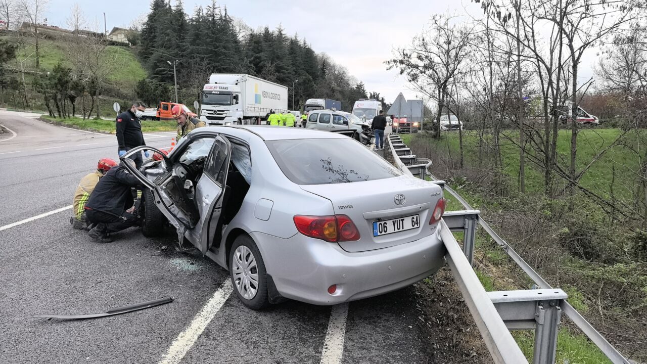 Kazada, otomobilde sıkışan Mehmet Ö. ve Gamze E., itfaiye ekipleri tarafından bulundukları yerden çıkarıldı.