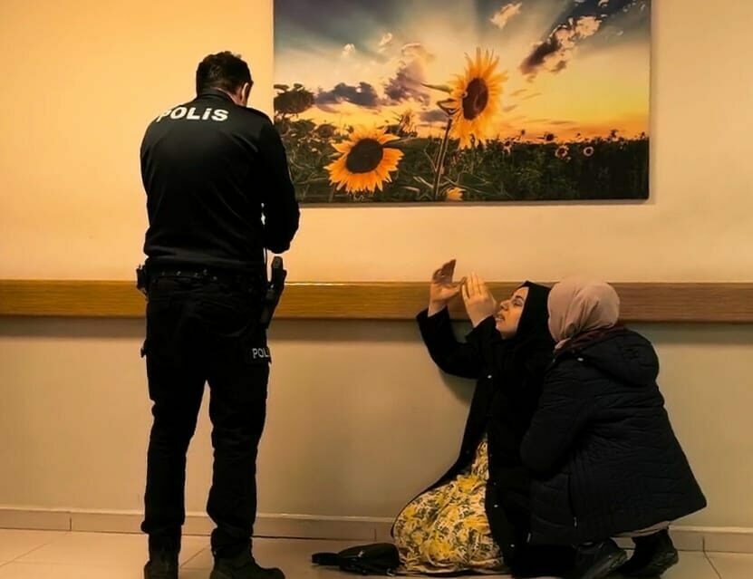 Kızının yaralandığını öğrenerek hastaneye gelen anne Emine Ç. (30), acil servis önünde ellerini açıp dua etti.