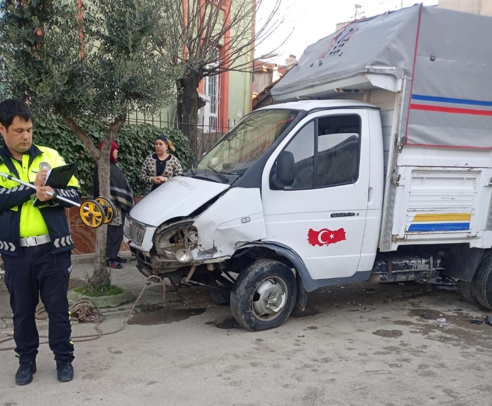 Stadyum istikametine seyir hâlinde olan 16 AEU 123 plakalı otomobil, cami yakınlarında park etmiş kamyonete önden çarptı.